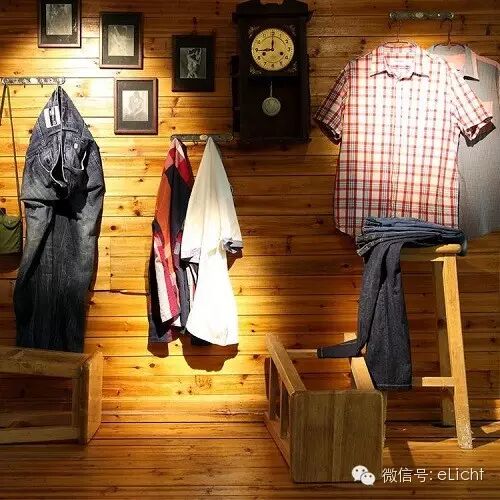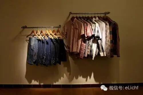 这个场合,每个“干净”光斑只照亮两件衣服,其余的都在阴影之中。如果想照亮全部衣服,就需要更多灯具。这时“干净”光斑就不合适,需要稍有一些副光斑的光型。
